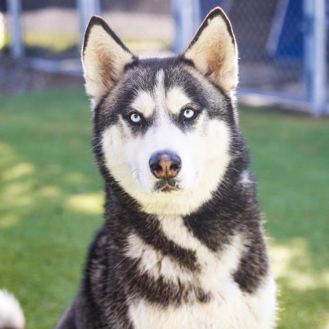 개집에 있는 동물 “Foster”는 위탁 보호 중이며 입양할 수 있습니다.