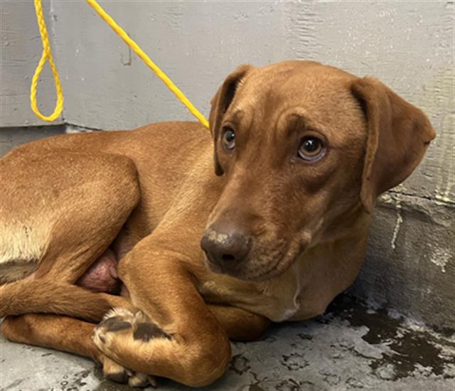 这只动物正在等待领养。.